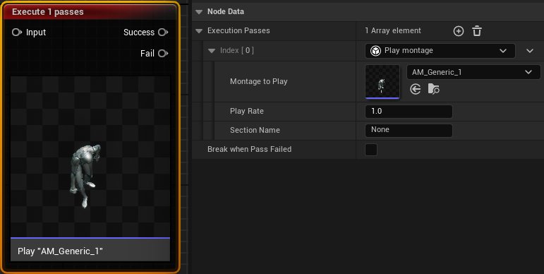 Add an Execution Pass (e.g., Play Montage) and assign your chosen animation montage.