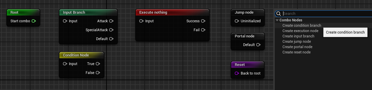 3. Create an Input Branch and connect the Start Combo pin from the Root node to the Input pin of the new branch. This marks the entry point of your combo.